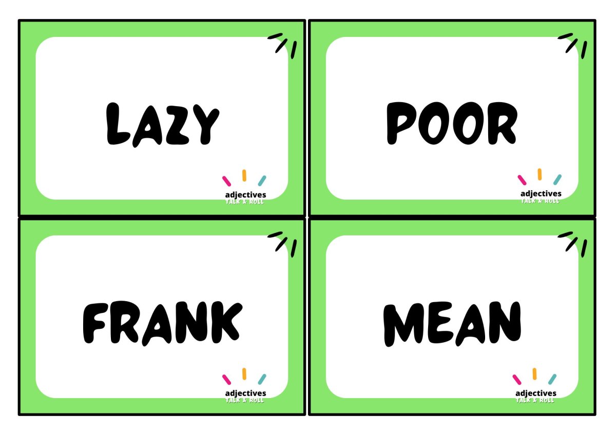 karty z przymiotnikami