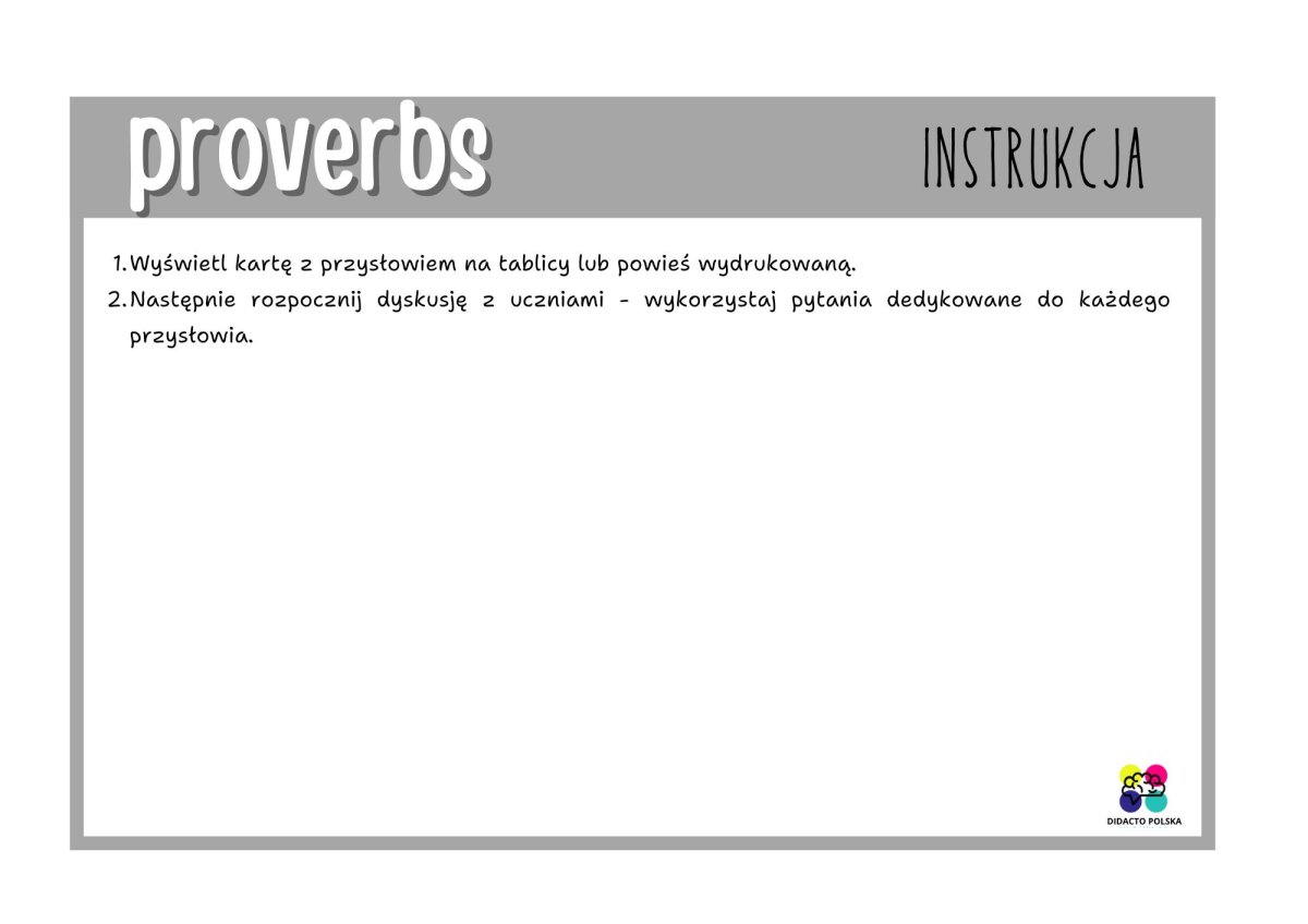 Do każdego przysłowia jest zestaw pytań do dyskusji z uczniami.
